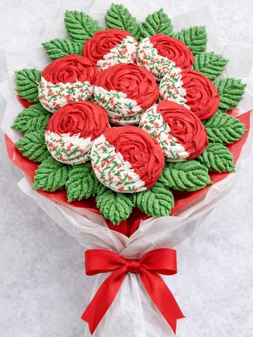 Italian Red Velvet/White Chocolate sandwich cookie and Italian Leaf Cookie Bouquet. approximately 20-30 cookies.